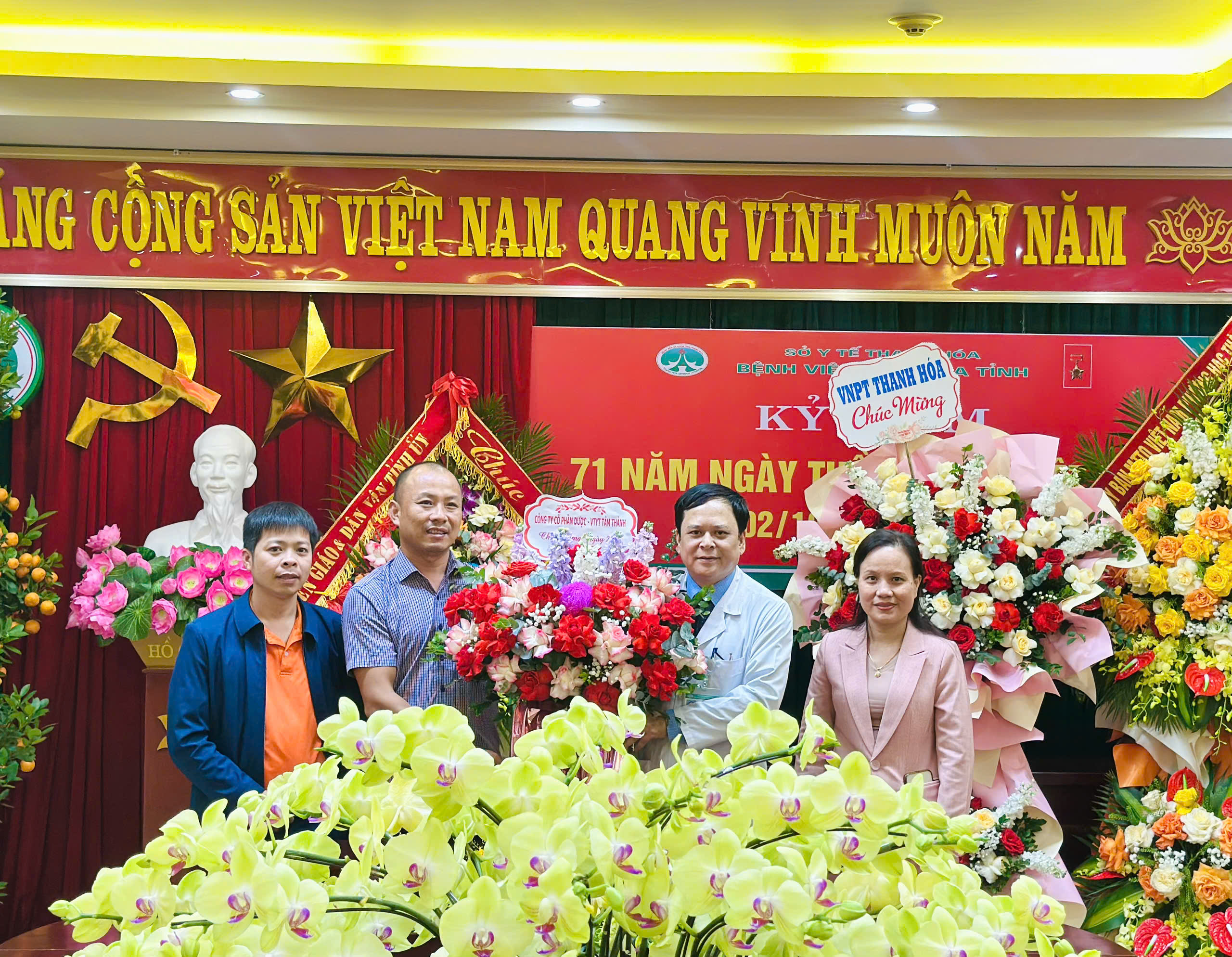 Để biến những lời chúc thành hành động thiết thực, đại diện Ban lãnh đạo Dược Tâm Thành đã trực tiếp mang những lẵng hoa tươi thắm đến thăm và chúc mừng Ngày Thầy thuốc Việt Nam tại các đơn vị y tế tuyến đầu của tỉnh, bao gồm: