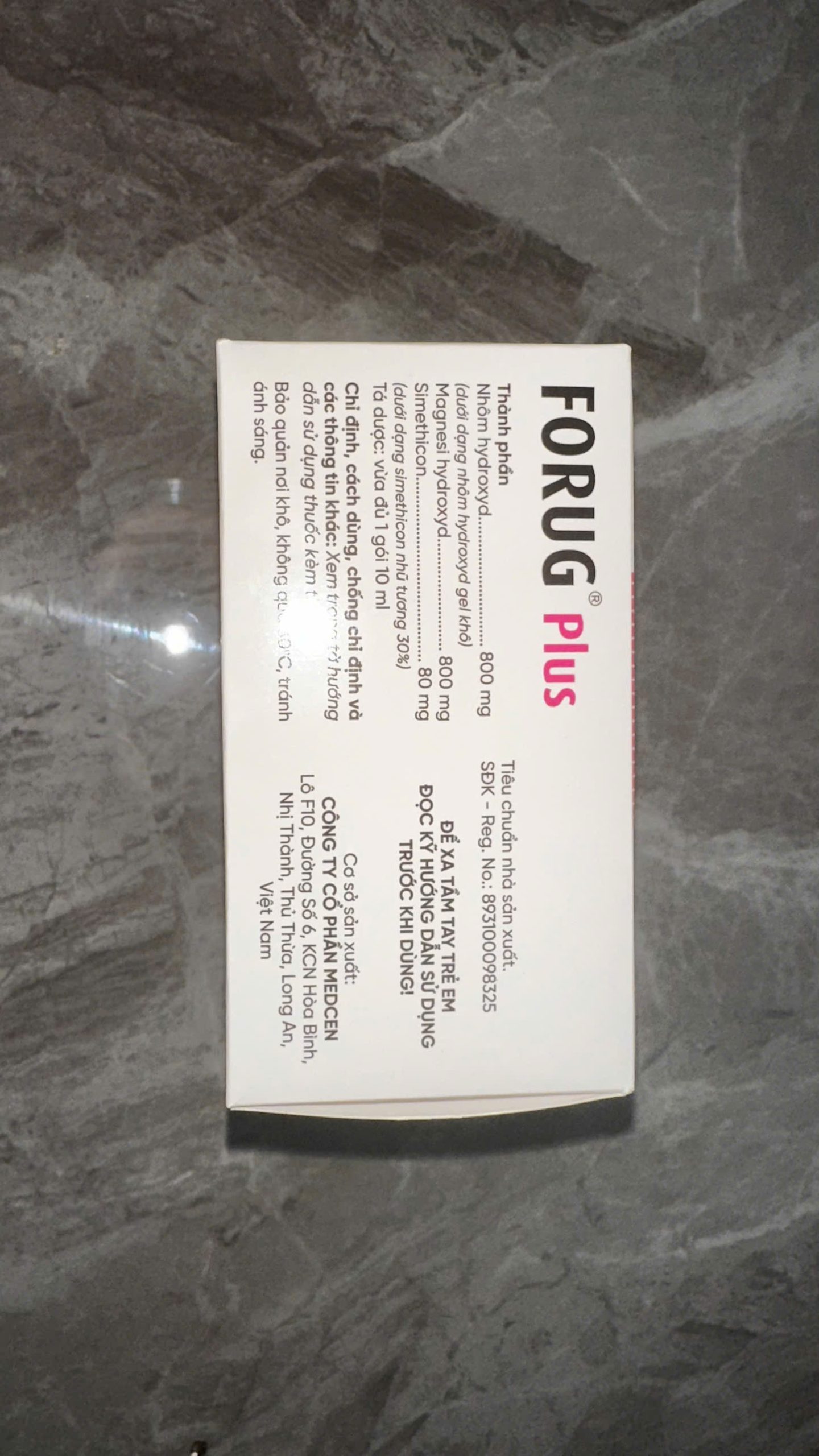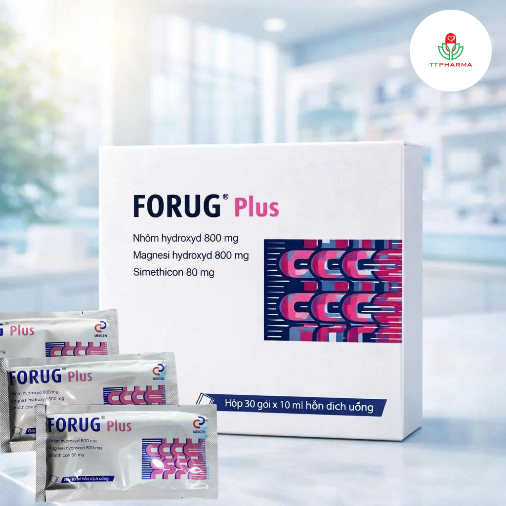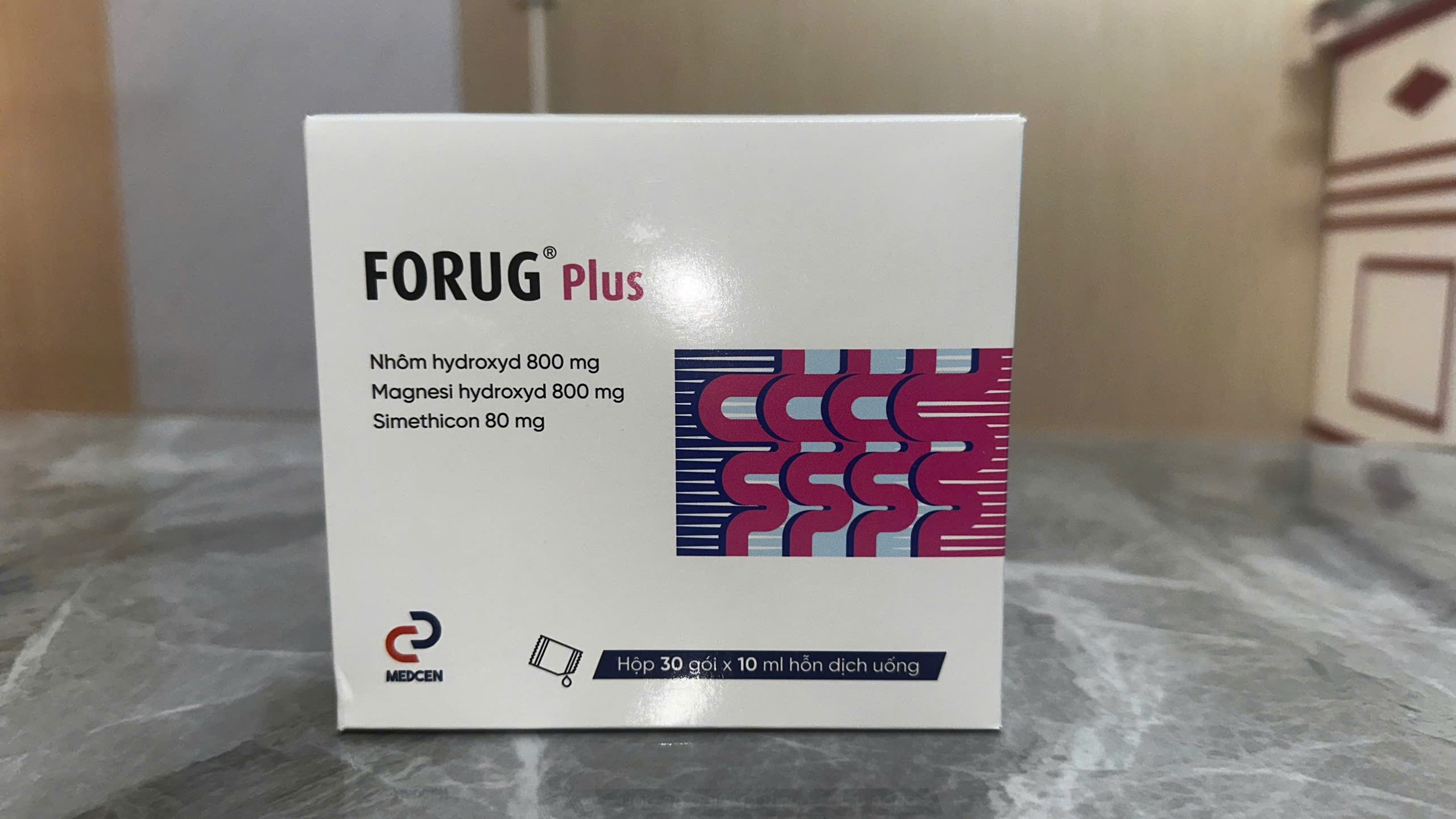 FORUG Plus là sản phẩm dạng hỗn dịch uống, được bào chế dưới dạng gói tiện lợi, phù hợp sử dụng trong các trường hợp cần bổ sung các hoạt chất như nhôm hydroxyd, magnesi hydroxyd và simethicon.