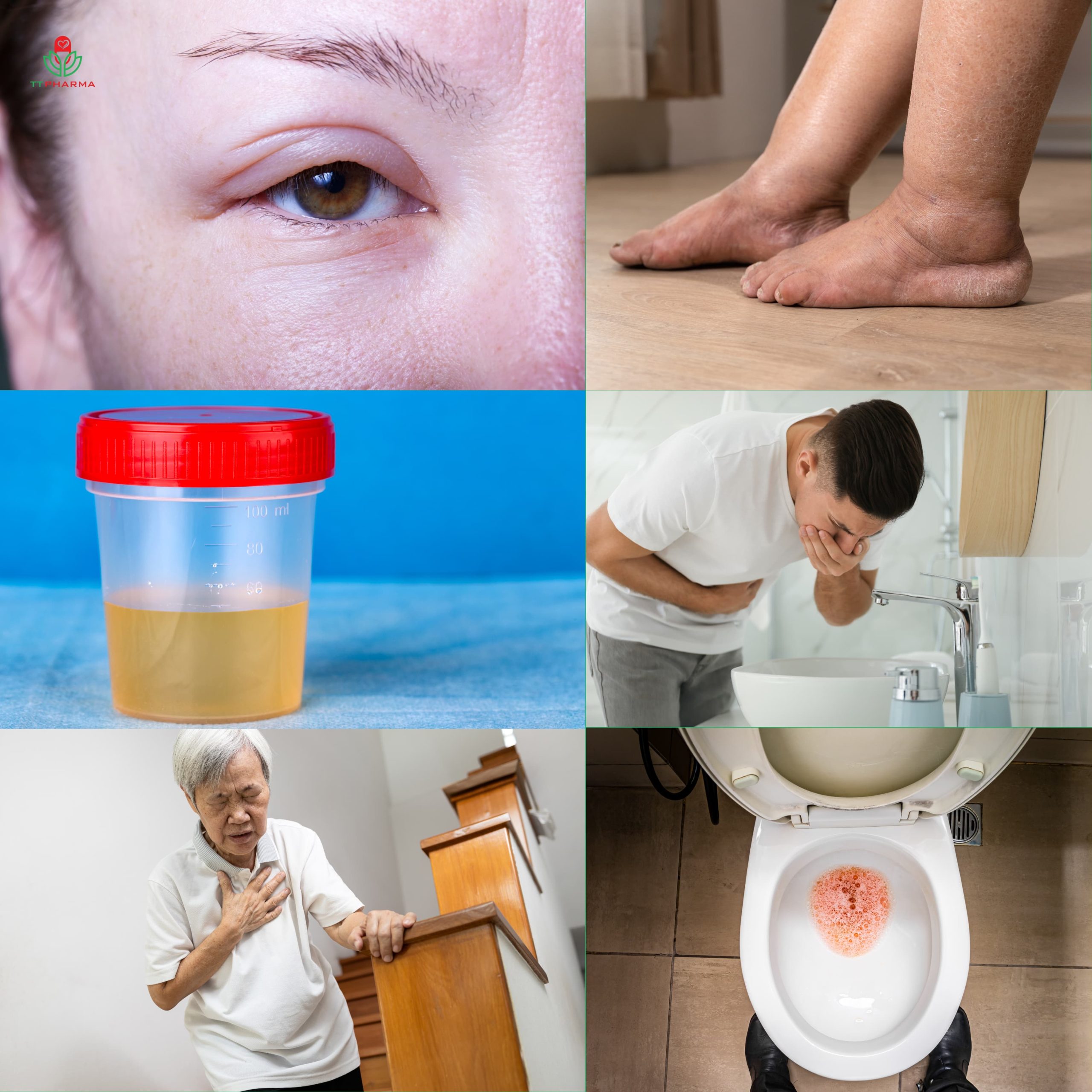 Hội chứng thận hư: Mất nhiều protein qua nước tiểu, gây phù toàn thân.